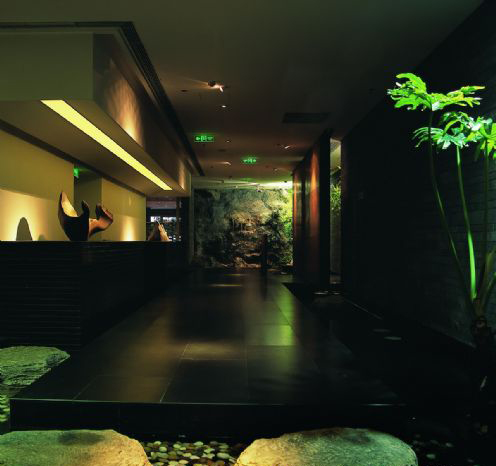 “一泉德的设计没有走北湖玖号的风格,在这样一块商业繁华的地段,低调奢华是体现差异性的一种主张,我们选用水和植物来做一泉德,水是利万物而无形的,有了水,建筑就活了起来,植物也活了起来,也符合了高端消费领域的精神需要。”设计师如是说。走进一泉德,巧石遍布,细水盘流,左右是爬山转角,抄手游廊。木石为路,藤萝绕树,山虎爬墙,锦鲤游池。活水的设计几乎覆盖了会所近乎一半面积,而灯光与植被的设置也很有心思,光以暗光为主,几乎找不出一盏直接进入视线的明光,而植物多以盆栽、榕树、散尾竹等绿色植被为主,使来此的茶客收获从容淡泊与心旷神怡。